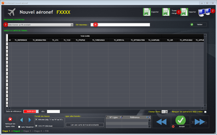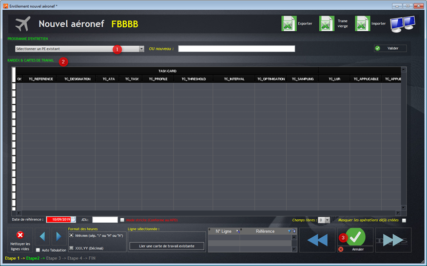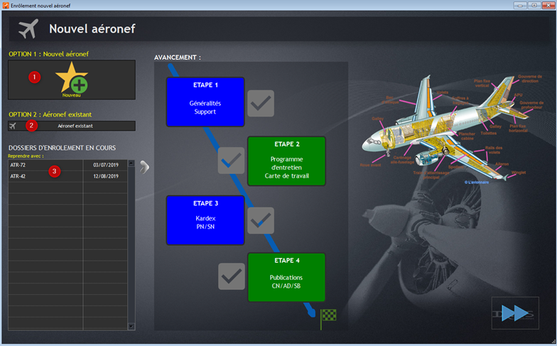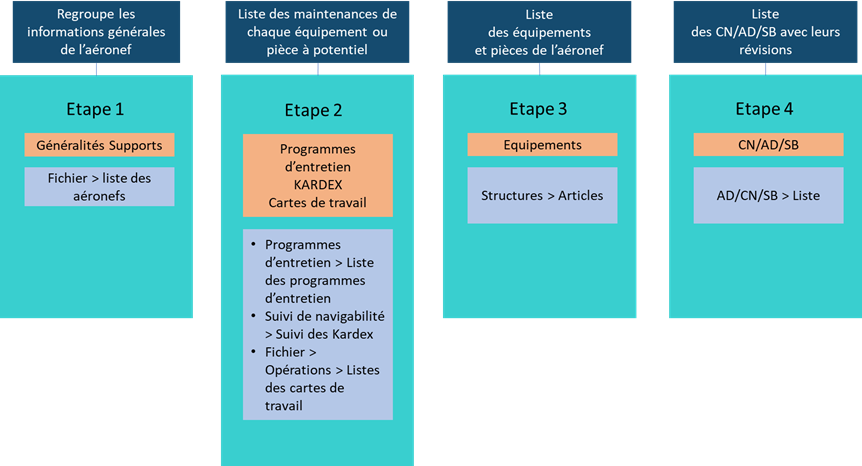 L'enrôlement consiste à créer un programme d’entretien avec toutes les pièces et équipement de l’avion. Il repose sur 4 étapes successives.