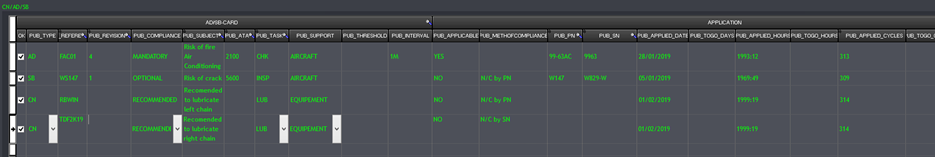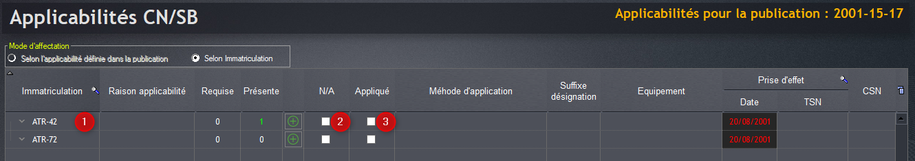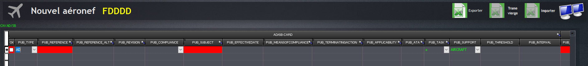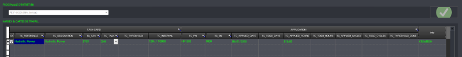 Le type d’avion est enregistré, il est possible de le sélectionner dans la rubrique “Applicabilité”, “Applicabilités par type” de la carte de travail.