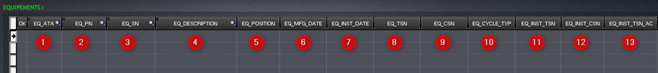 Certains champs peuvent rester vierges si l’aéronef ne possède pas le type d’équipement. Une fois les champs renseignés passez à la page suivante en cliquant sur la flèche en bas à droite (1). Il sera possible à tout moment de revenir en arrière.