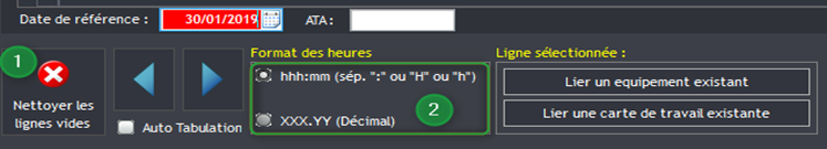 Puis sélectionner l’avion concerné par la carte de travail à supprimer (1).