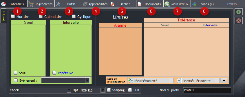 7 : L’intervalle d'exécution de la carte de travail qui peut être cyclique, horaire ou calendaire.