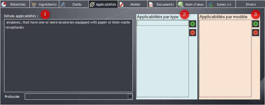 Le modèle d’avion est enregistré, il est possible de le sélectionner dans la rubrique “Applicabilité”, “Applicabilités par modèle” de la carte de travail.